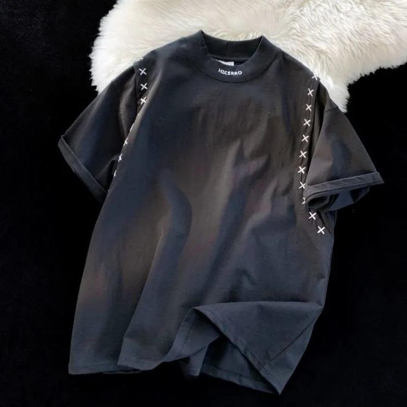 Herren Sommer Design Locker sitzendes Kurzarm-T-Shirt mit Rundhalsausschnitt und einfacher Stickerei