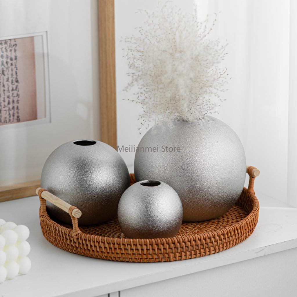Silber Galvanisierte Keramikvase Matt Sphärisch Desktop Blumenvase Dekoration Ornament Heimdekoration Goldene Vasen