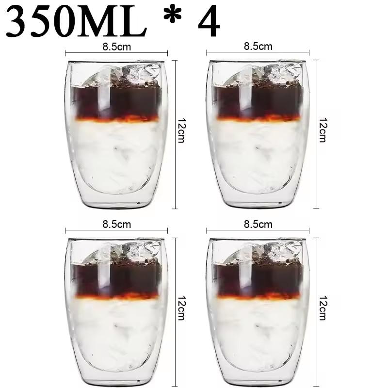 Für 2/4/6 Stück doppelwandige isolierte Hitzeglas Espresso Tassen 350ml Isolierte Thermoglas Kaffeetasse für Tee/Saft/Milch, Latte