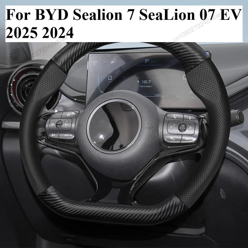 Byd Breathable Leather Matte Carbon Fiber Texture Steering Wheel Covers Suitable For BYD Sealion 7 SeaLion 07 EV 2025 2024