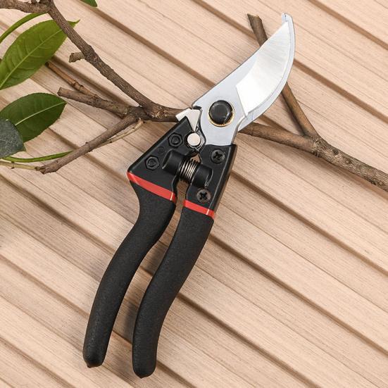 These premium pruning shears are designed for safe, easy, and efficient gardening. Featuring a spring and locking device, they open and close smoothly with one hand, preventing accidental injuries. The ergonomic blade and handle ensure comfortable use, reducing fatigue during extended work sessions. Crafted from high-quality carbon steel, the blades are super sharp, durable, and wear-resistant, effortlessly cutting branches up to 3/4 inch thick.