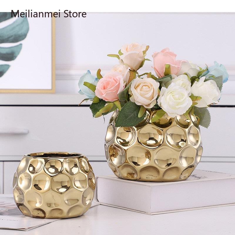 Goldene Keramikblumentöpfe Moderne Dekoration Blumenvase Dekoratives Arrangement Schreibtischdekoration Vergoldete Vasen Hausgartendekoration