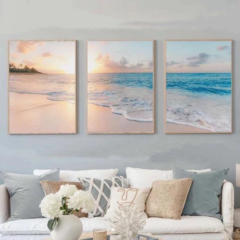 Natürliche Meereslandschaft Blaues Meer Strandlandschaft Poster und Drucke Modernes Leinwandbild Wandkunst Bild für Wohnzimmer Heimdeko