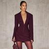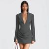 Elegantes tiefes V-Ausschnitt gerafftes Minikleid Herbst Langarm Schlank Hohe Taille Mode Patchwork Club Partykleid Damenbekleidung