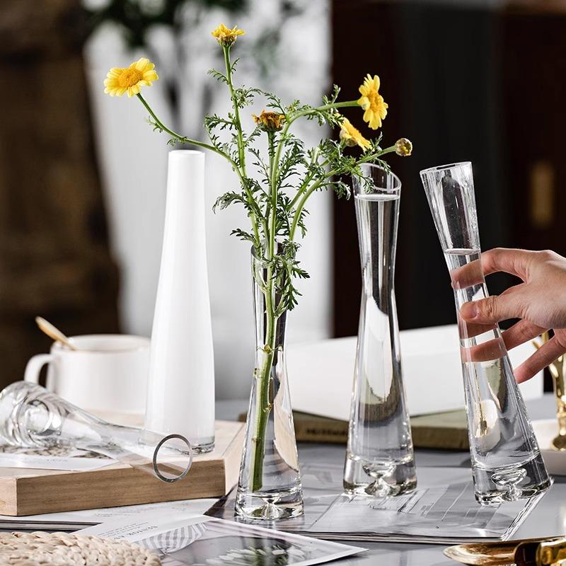 Transparente Glasvase Ornament Gäste Restaurant Vase Blumenarrangement Kleiner Mund Wasserblumen-Teiler Schreibtischdekoration