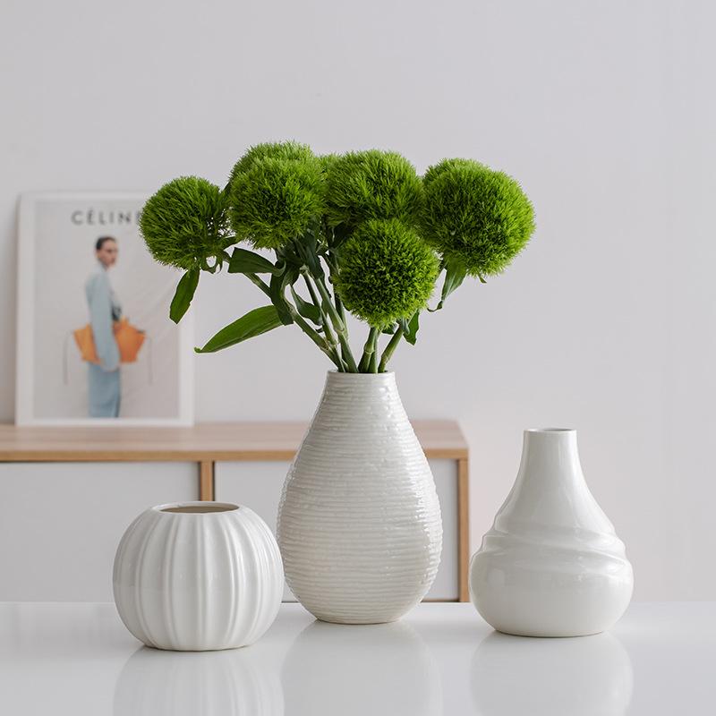 Weiße minimalistische Keramik-Dekorationsvase mit frischen Blumen Wohnzimmer Eingang Schreibtisch Blumenarrangement Dekoration Vasen