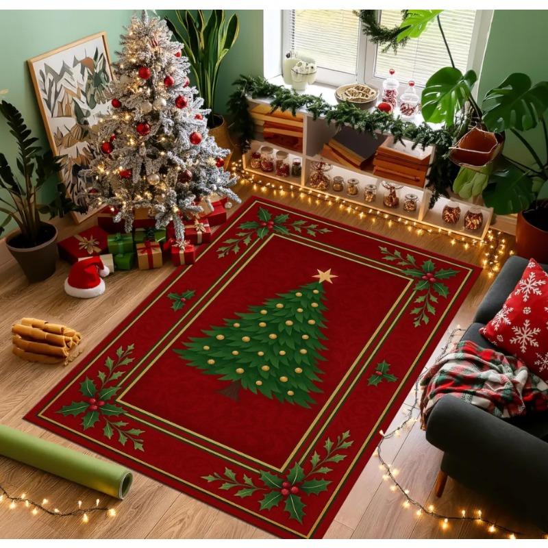 Christmas Decoration Carpet Christmas Tree Print Winter Warmth Rug Living Room Bedroom Non Slip Mat Christmas Decoration Gift