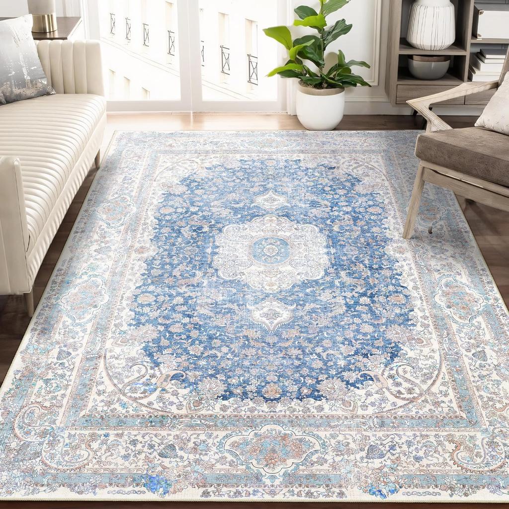 Traditioneller Persischblauer Blumendekor Teppichmatte Retro Böhmischer Stil Rutschfester Teppich Heim Wohnzimmer Dekoration Teppich