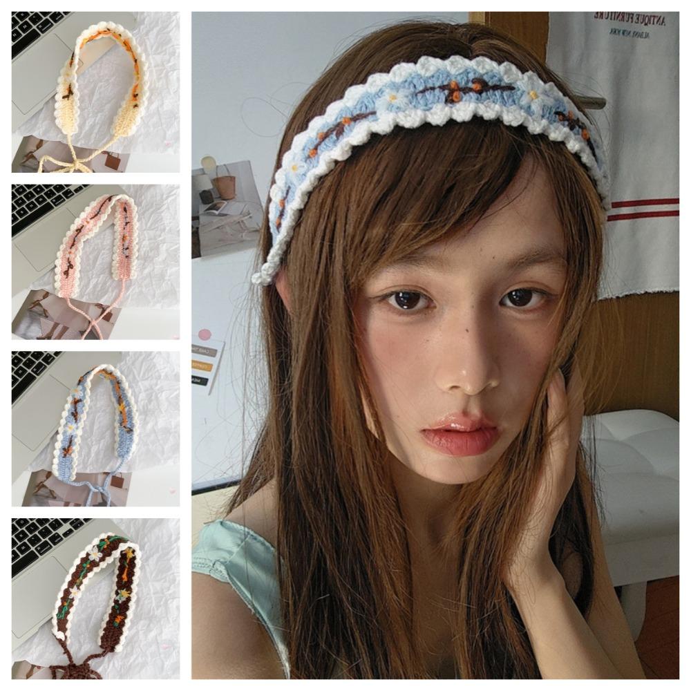 Besticktes Häkel-Haarband Wollgarn Pastoraler Stil Haarband Gestricktes Blumen-Stirnband Mädchen