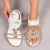 Women's Sandals Summer New Large Size Elastic Overfoot Flat Flower Casual