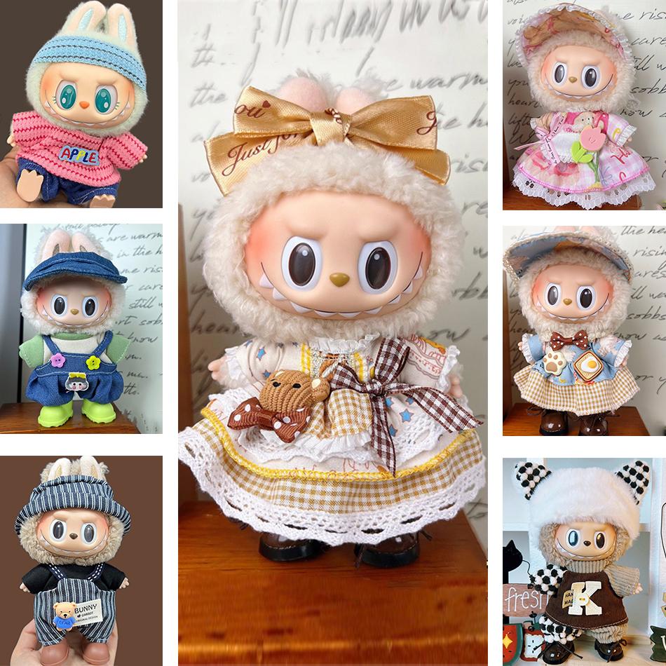 (Nur Kleidung) Labubu Bekleidungszubehör Hut V1 V2 V3 Plüschpuppen-Zubehör Labubu Bekleidung Ersatzset Süßes Zubehör