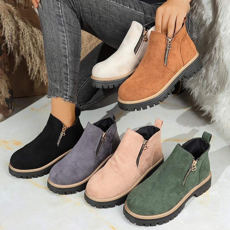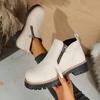 Damen Stiefeletten mit runder Zehenpartie, Martin Boots mit Blockabsatz und seitlichem Reißverschluss, Herbst Winter Kurzstiefel für Damen