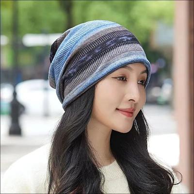 Stripe Print Pullover Hat Multifunctional Keep Warm Women's Pile Hat Autumn and Winter