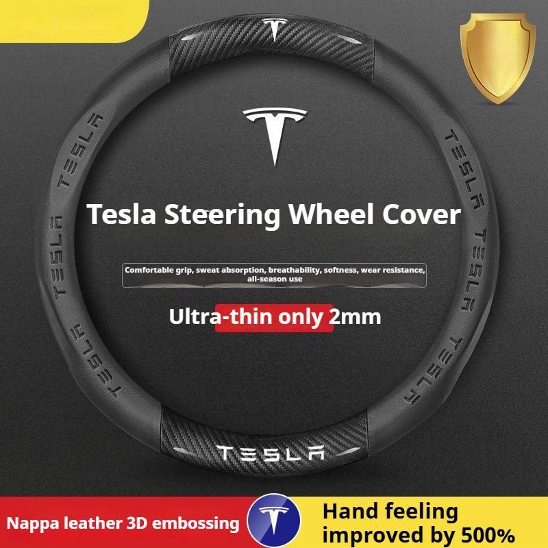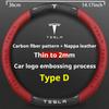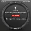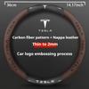 Car Carbon Fiber Leather Anti-Slip Steering Wheel Cover For Tesla Cybertruck Beast Roadster Model 3 Model Y Model S Model X