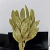 10Pcs New Artificial Artificial Leaves DIY 6-Leaf Fake Plant Leaves Glitter Christmas Tree Decor New Year Gift