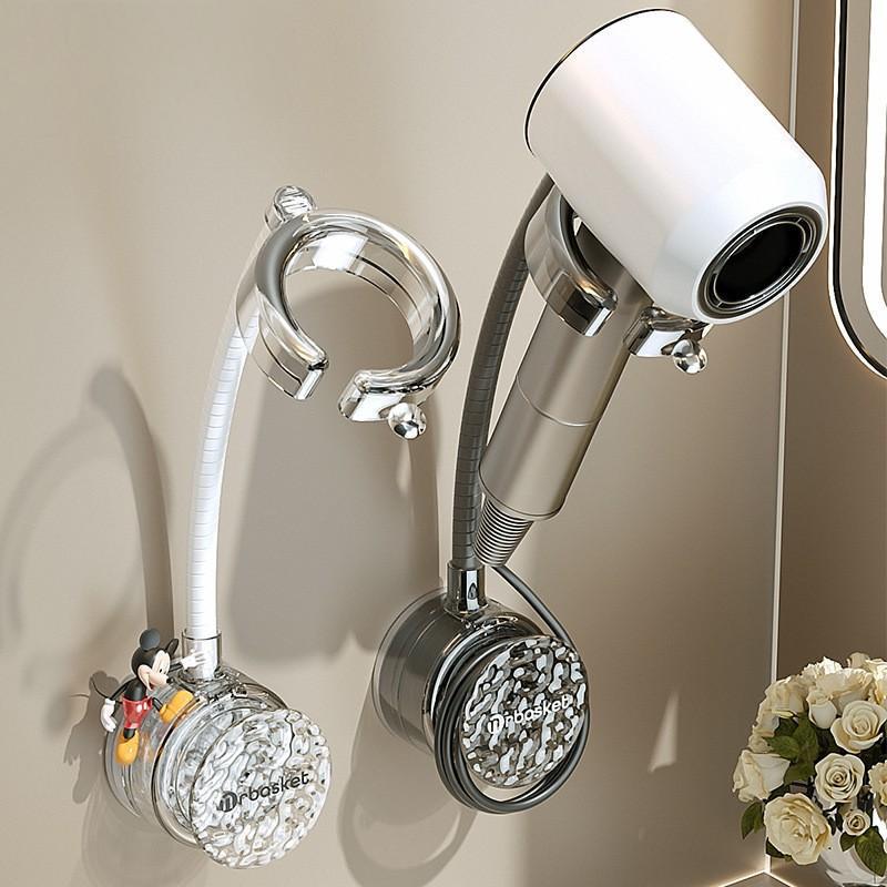 Saugnapf Föhnständer, Freihändige Nutzung für Faule, Hängegestell für Föhn, Badezimmer Föhnständer, Bohrloses Aufbewahrungsregal