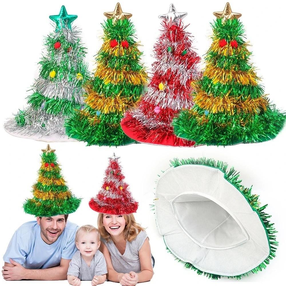 Shiny Tinsel Colorful Poms Christmas Tree Hat Role-Playing Costume Hat Photo Props