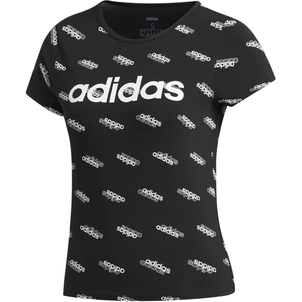 Adidas Sports Lifestyle Series Logo All Over Print Design Round Neck Breathable Casual Short Sleeve T-Shirt Women T-Shirts Black FM6191