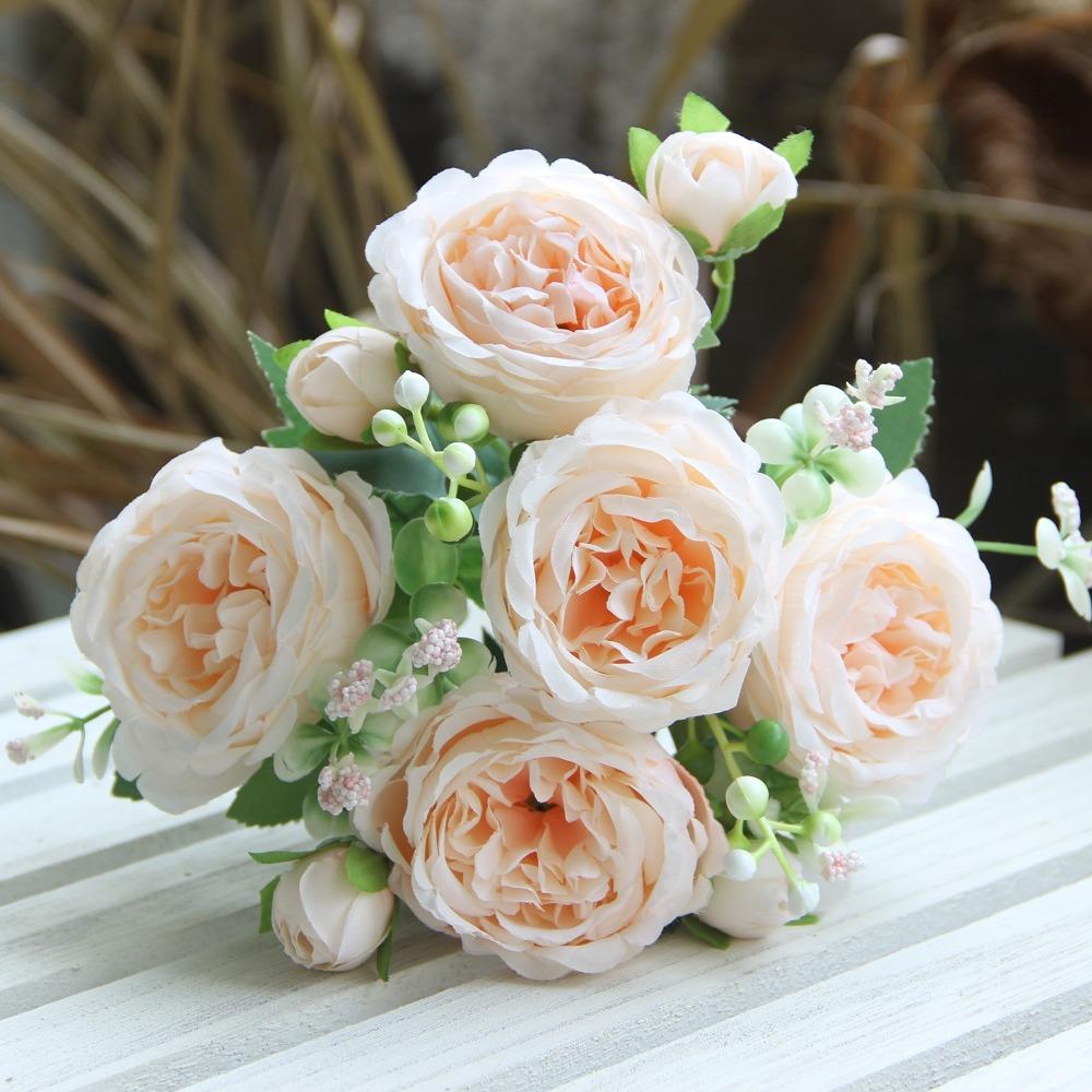 Neuer 32cm Pfingstrosenstrauß 3D 5 Köpfe Seidenblume Kleine Knospe Real Touch Kunstblume Hochzeit