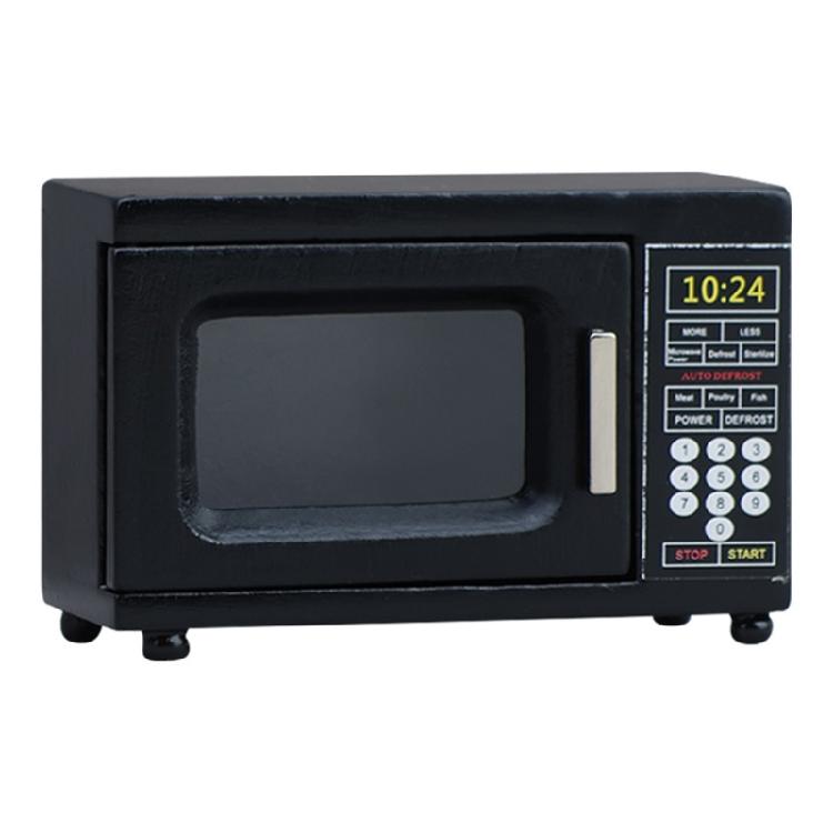 Diese hölzerne Miniatur-Mikrowelle im Maßstab 1:12 verfügt über authentische Details wie einen funktionsfähigen Türgriff und Bedienknöpfe, gefertigt aus Massivholz für Puppenhausmöbel-Enthusiasten.