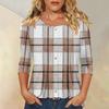 Damen Modisches Lässiges Dreiviertelarm Knopf Kariert Gestreift Druck Rundhals Oberteil