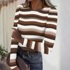 Damen Casual Mode Rundhals Gestreiftes Langarm Ripptop