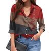 Damen Modisches Lässiges Lockeres Geometrisches Patchwork-Druck Langarmhemd
