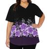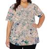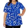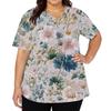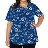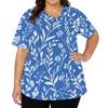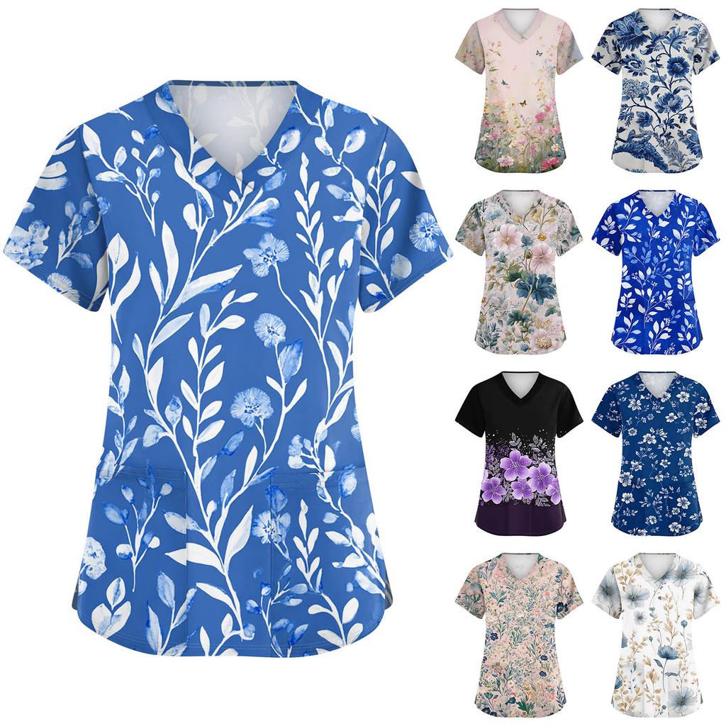 Modisches Damen-Arbeitsoberteil mit V-Ausschnitt und kurzen Ärmeln, mit doppelseitigen Schlitzen und Taschen, mit einem Retro-Blumendruck.