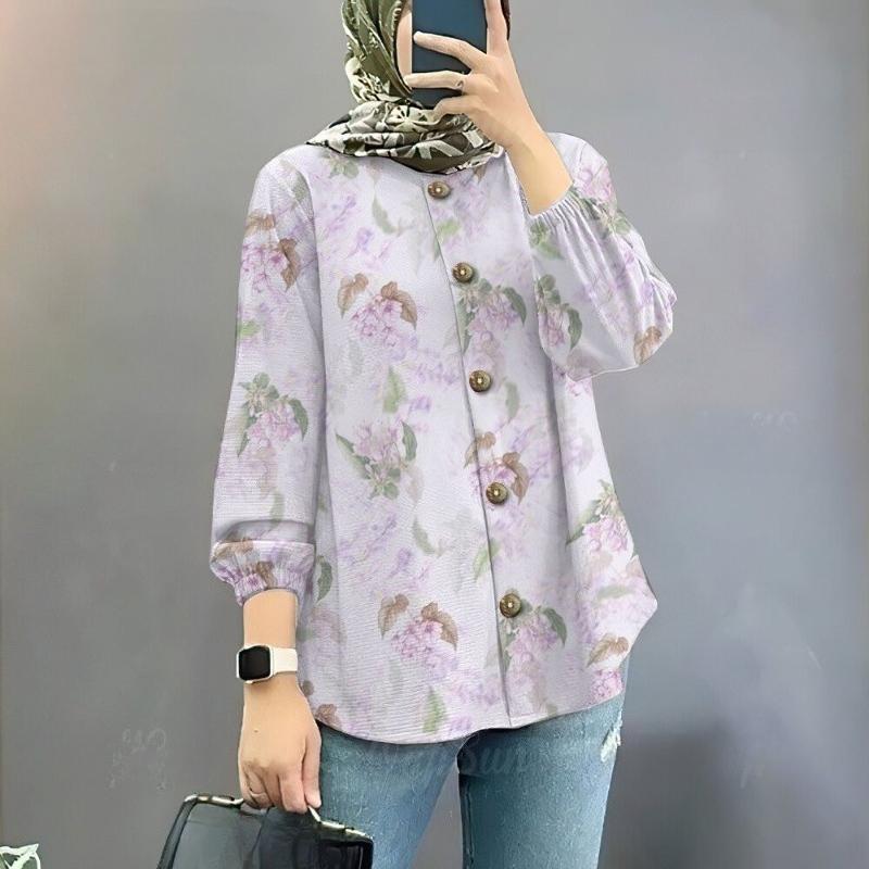 Damen locker Mode bedruckte Hemden Oberteile Muslimische Damen Langarmhemden
