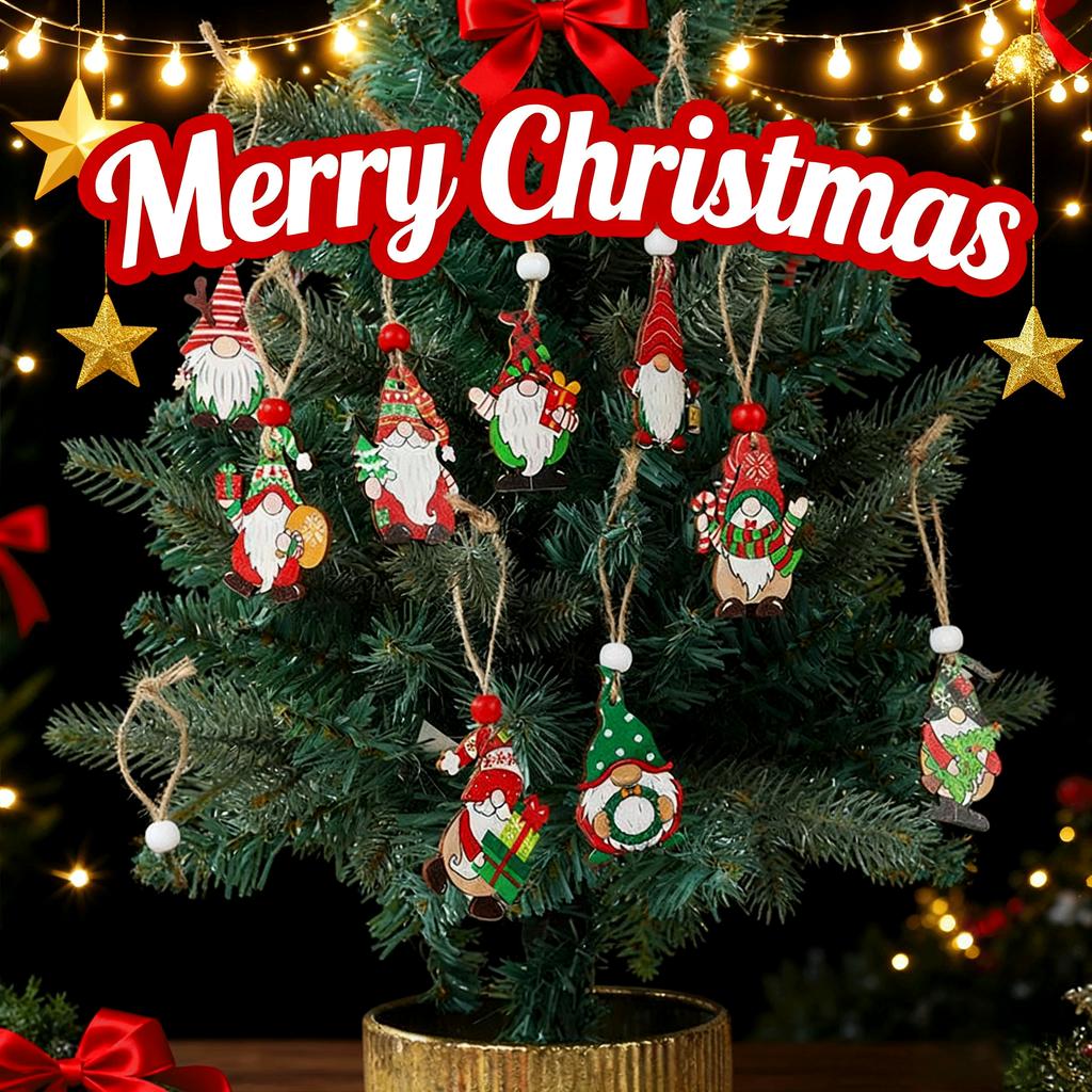 Christmas decoration 2025 Painted wooden pendant Santa Claus Rudolph pendant Gift Christmas tree decorations 12-pack boxed