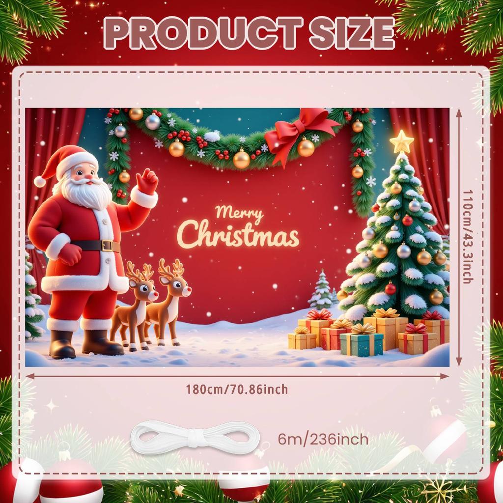 Xmas Party Banner Santa Claus Design Xmas Banner Festive Banner Reindeer Image For New Year Decor Christmas Party Family Party