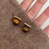 Casual Tiger's Eye Stone Bar Earrings Women's Light Luxury Retro Niche High-end Autumn Winter Simple Design Classic Fashion Jewelry