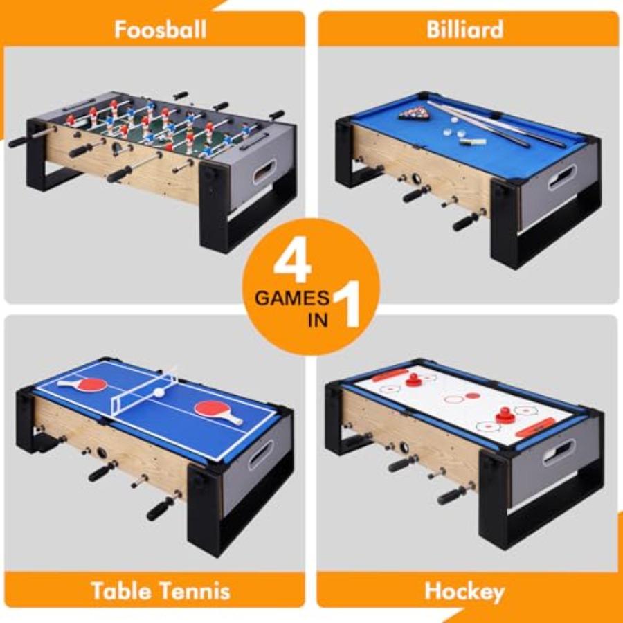 36 4-in-1 Drehbarer Multifunktions-Spieltisch Mini-Kombinations-Spieltisch für den Innen- und Außenbereich mit Billard, Hockey, Tischfußball und Tischtennis