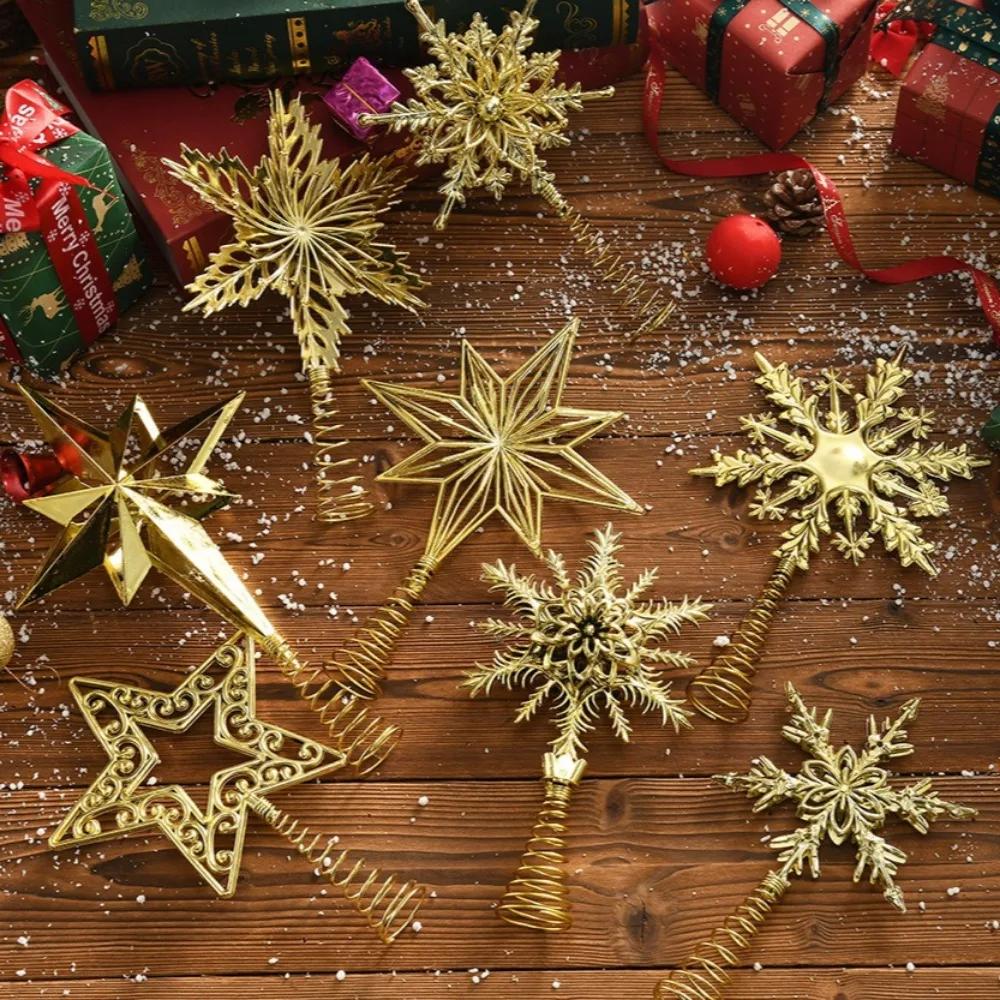 Weihnachtsbaumspitze Glitzer Gold Stern Ausgehöhlt Schneeflocke Weihnachtsbaum Anhänger Zuhause Neujahrsdekoration Party Geschenkartikel