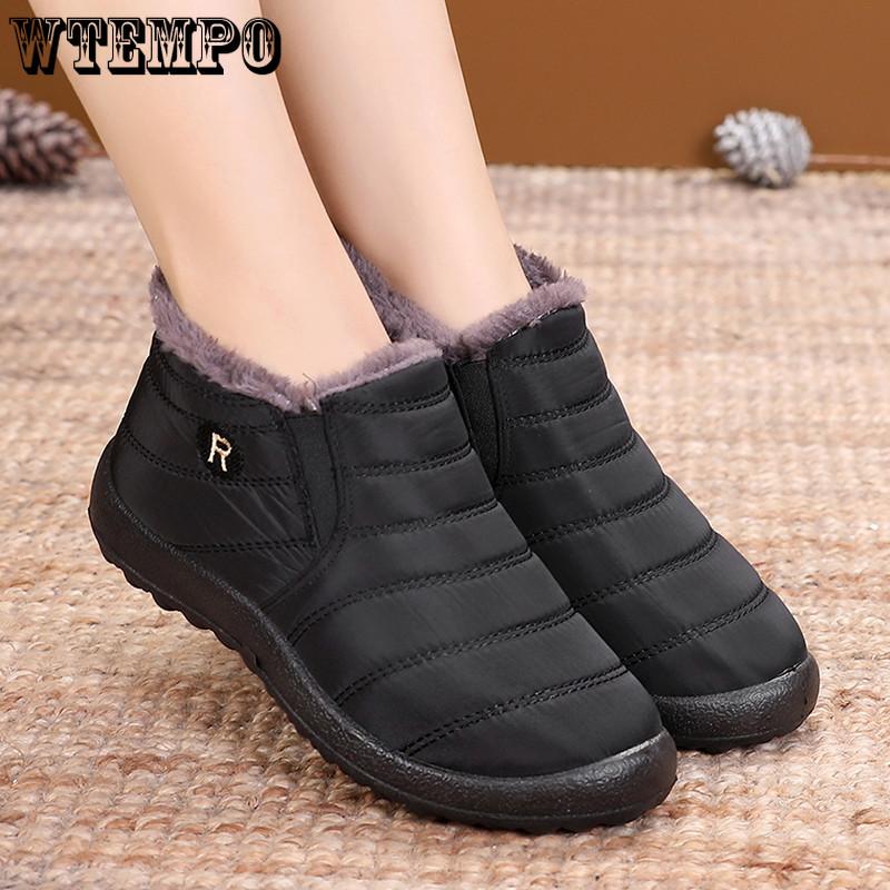 Winter Damenschuhe - Wasserdichte Kurze Baumwollschuhe Wollgefütterte Warme Freizeitschuhe Dicke und Rutschfeste Schuhe