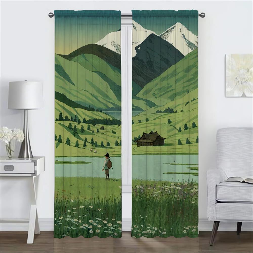 Weitläufiges Grasland Tüll für Schlafzimmer Vorhänge Raumteiler Verdunkelungsvorhänge für Kamera Moderne Wohnzimmer Vorhänge 2 Stück Vorhang Zuhause