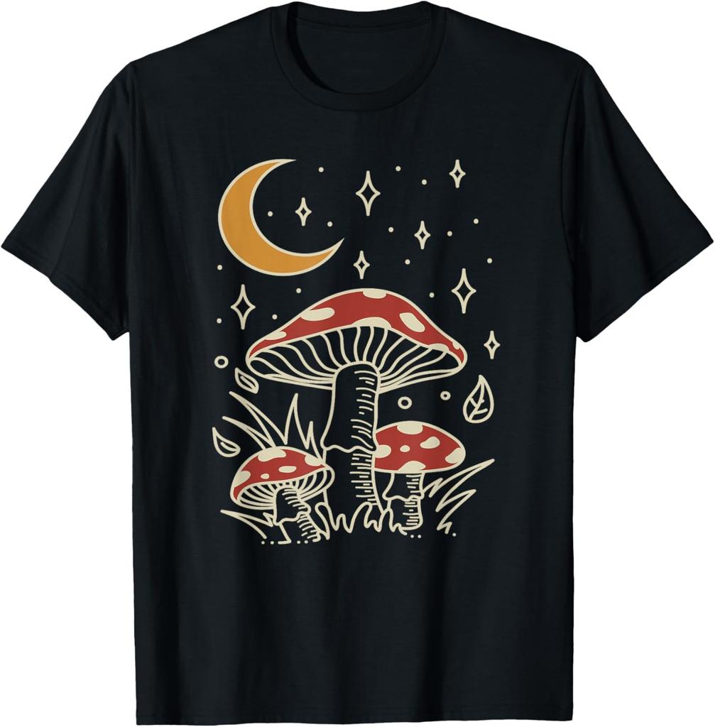 Pilz Mond Sterne Grafik T-Shirt Cottagecore Hexenhaft Astrologie Himmlischer Print T-Shirt