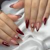 24PCS Almond with Ethereal Cat Eye Gilt Press on Nails Icy Clear Shiny French Metallic Lines Design False Nails Light Luxury