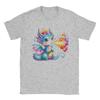Drachen-T-Shirt mit niedlichem Regenbogen-Drachen, der Feuer speit – Herren, reine Baumwolle, Rundhalsausschnitt, Kurzarm, Sommerkleidung