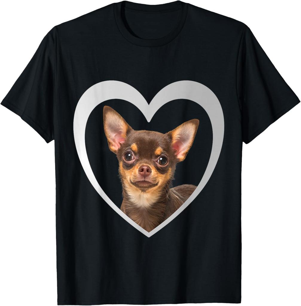 Chihuahua Hund Herz Umriss Grafik T-Shirt Herren Lässig Baumwolle Rundhals T-Shirt Reise