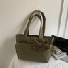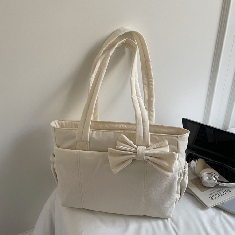 Large Capacity Cotton Padded Shoulder Bag Solid Color Nylon Handbag Bow Tote Bag Travel Bag