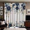 2 Stück HD digitales weißes Farbsystem blaue Blume grünes Blatt Vorhänge Heimdekorationsstil Dekoration Wohnzimmer Schlafzimmer Stange t