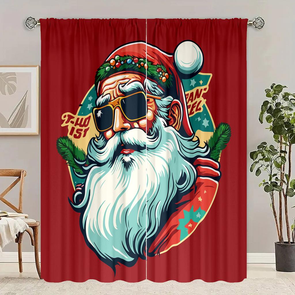 2 Stück - Winterdekoration - Santa West Coast Print Vorhang - Polyester - geeignet für Schlafzimmer, Wohnzimmer, Arbeitszimmer