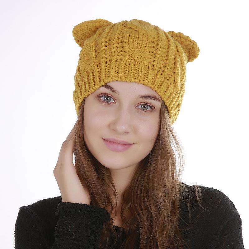Neue Herbst- und Winter-Strickmütze für Damen, Jacquard, 8-förmig, verdreht, Katzenohren, niedliche Wollmütze