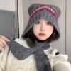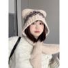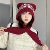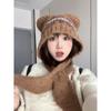 Cute Wool Blended Bear Hat for Women in Autumn and Winter Maillard Face Showing Small Warm Ear Protection Scarf Integrated Woolen Hat