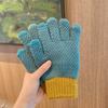 Winter Women's Cute Woolen Knitted Plus Velvet Contrasting Color Five Finger Cycling Warm and Thickened Windproof and Cold Proof Cycling Men's