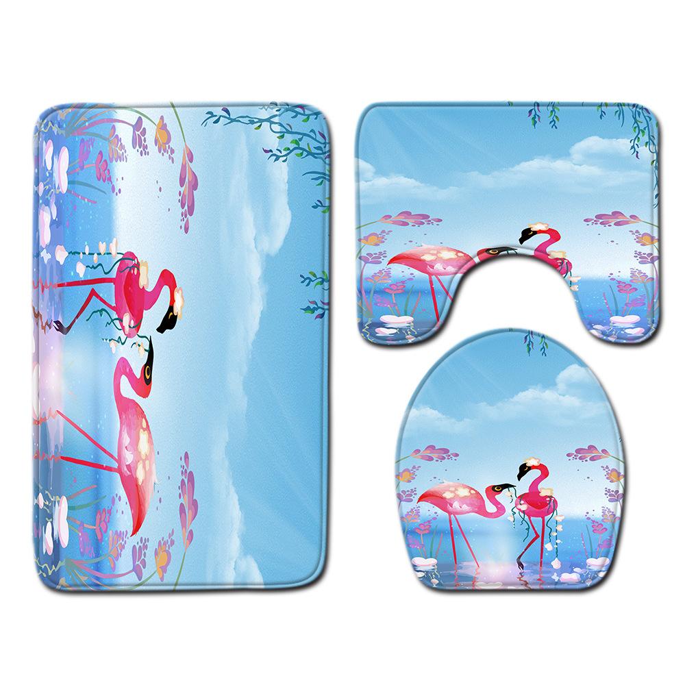 Flamingo Bathroom Toilet Three-Piece Floor Mat Doormat Bathroom Carpet