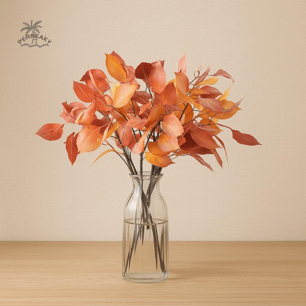Lebensechte künstliche Kaki-Blätter Luxuriöse realistische gefälschte Kaki-Blätter Handgefertigte simulierte Blumen Outdoor-Gartendekoration