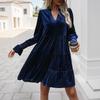 Damen Casual V-Ausschnitt Langarm Samtkleid Herbst Babydoll-Kleid Fließende Cocktail-Hochzeitsparty Etuikleider