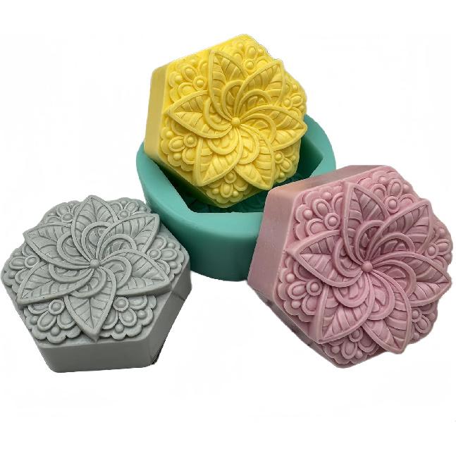 Hexagon Classical Pattern Soap Mold Candle Wax Molds,Decorated Epoxy Resin Aroma Plaster Diffuser Mould,DIY Silicone Mould for Handmade Soap Making